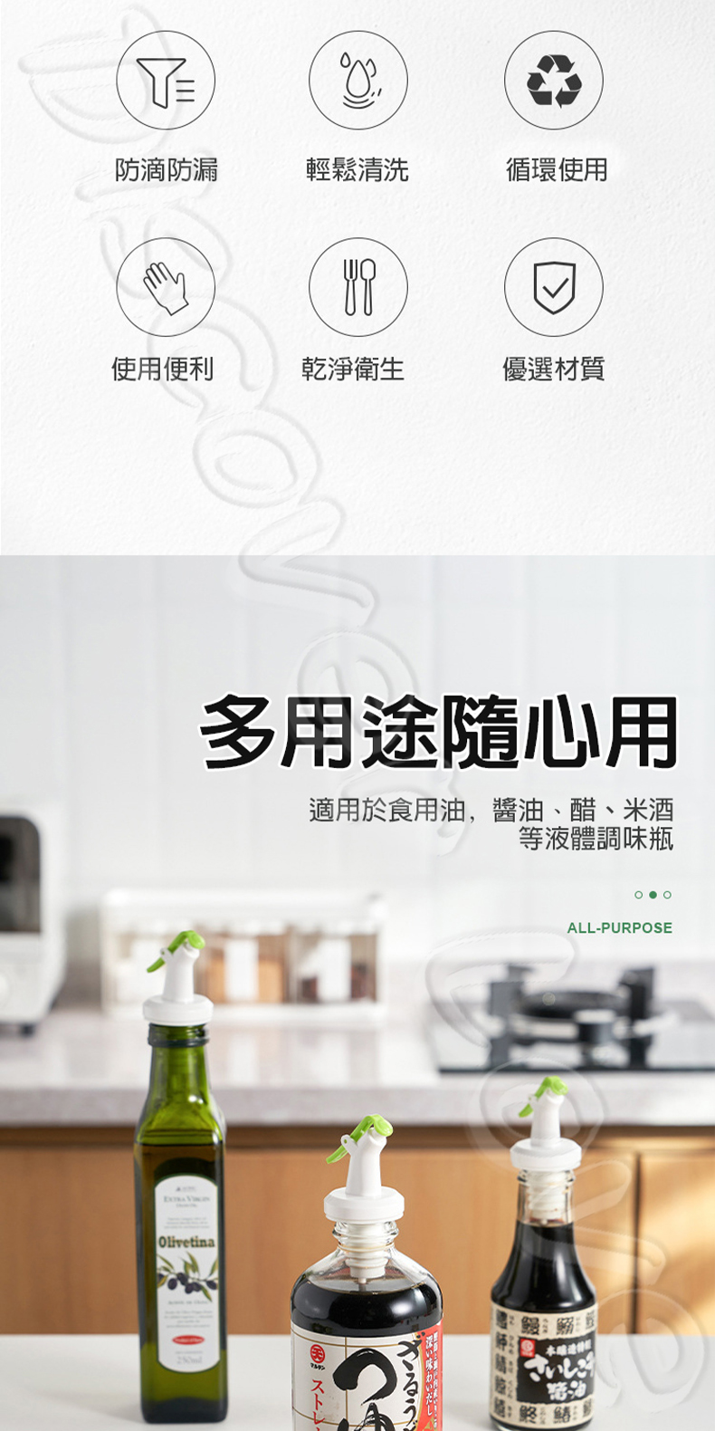 🌟 通用瓶口:彈性接口,適合多種油瓶、醬油瓶、醋瓶等常見瓶身