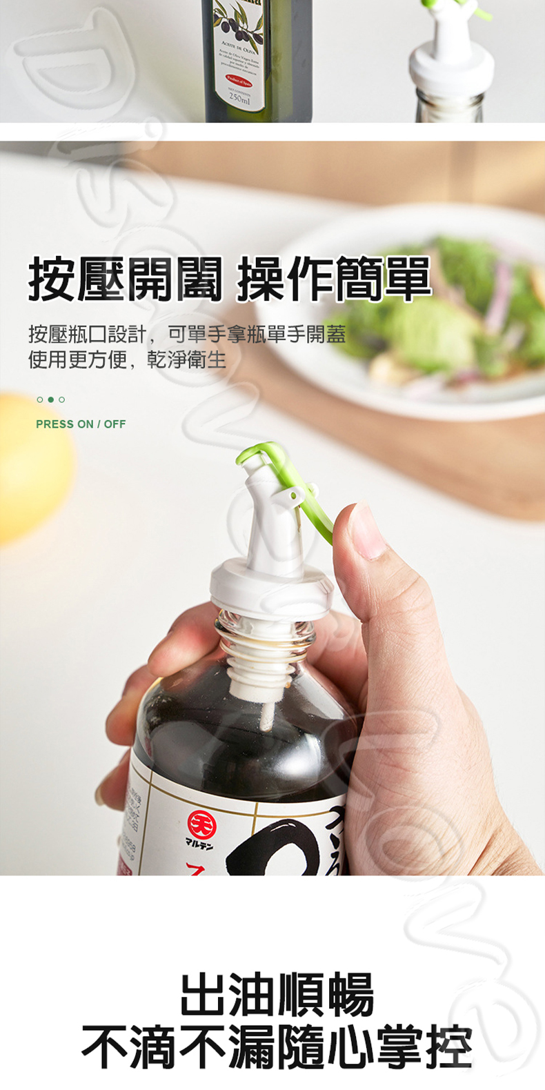 🌟 精準導流設計:輕輕一按,油醋醬料就能穩定流出,不灑漏、不打翻