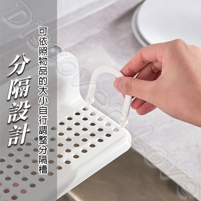 • 分隔可調設計:可依需求擺放百潔布、海綿、清潔球、洗碗精