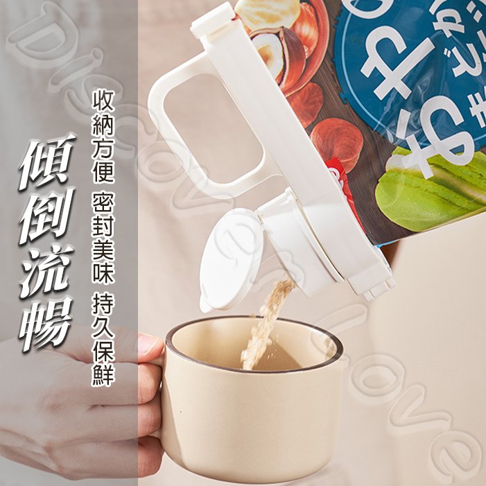 零食袋、粉類袋、飲料補充袋一打開就不好封?這款【手提導流密封夾】一次解決「密封+倒取」兩大困擾。