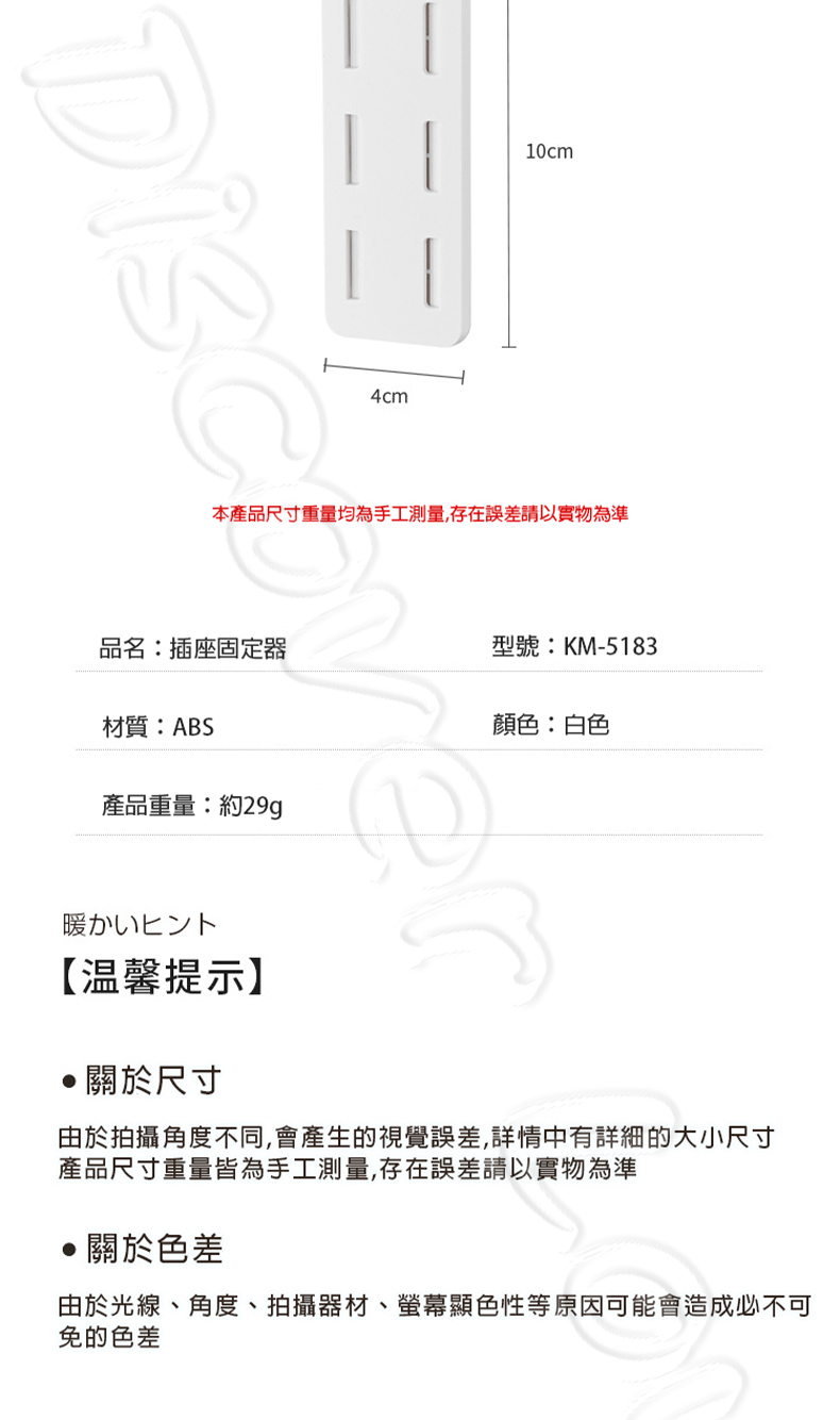 品名:KM5183 免打孔壁掛插座固定器