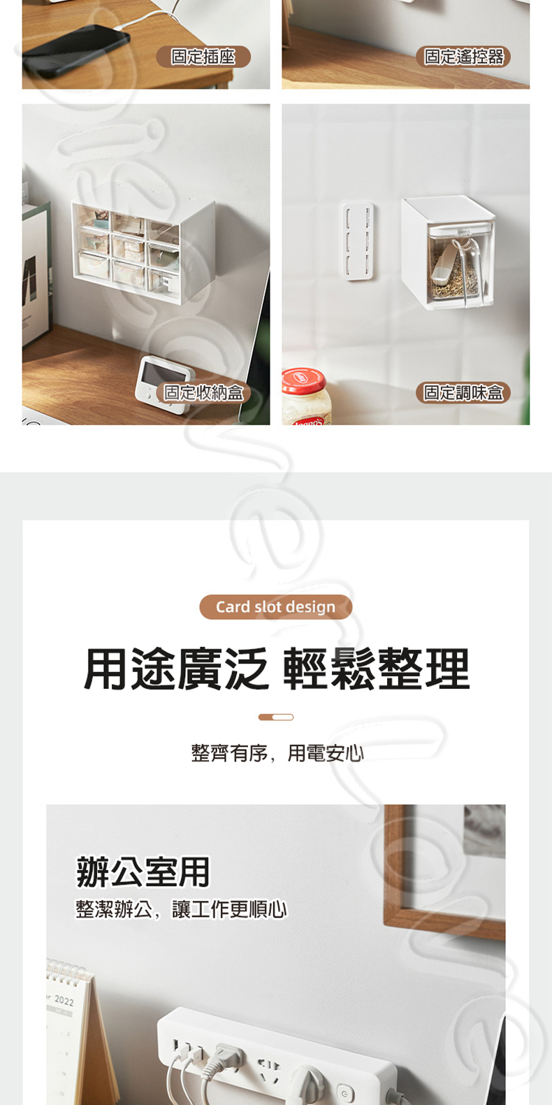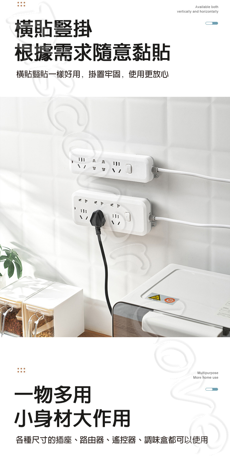 適用範圍:延長線、插座、路由器、遙控器等固定收納