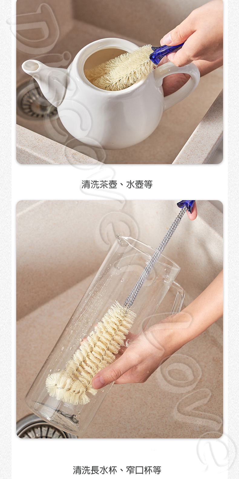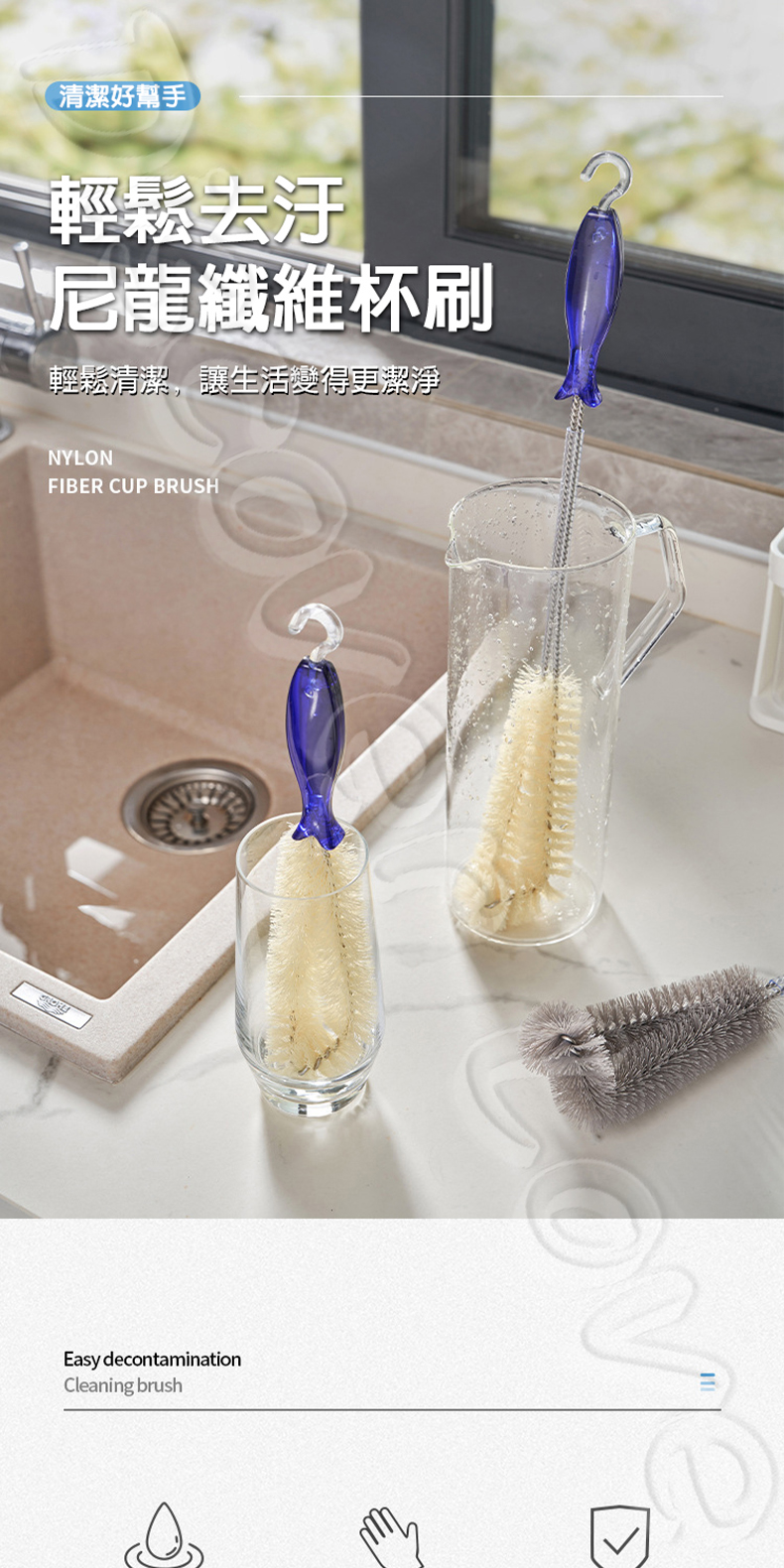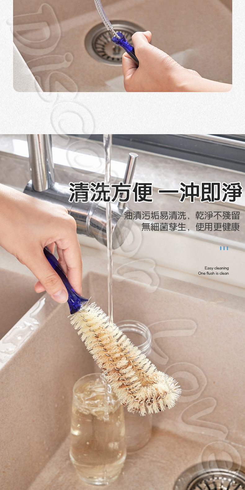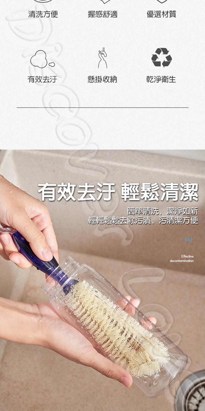 🧵 柔韌刷毛:耐磨刷絲,去汙力強不傷瓶身