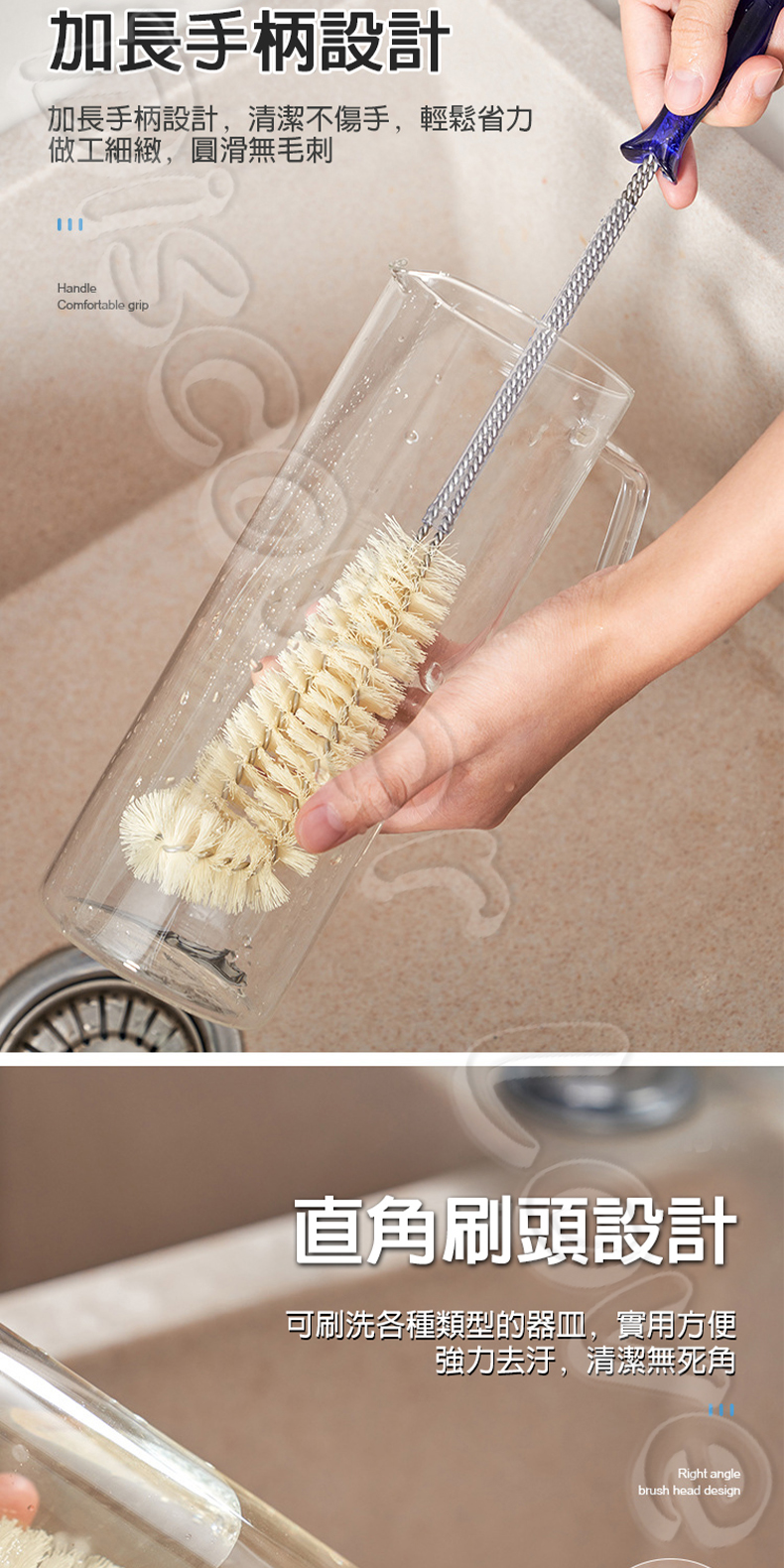 📐 L型直角設計:深入瓶底、瓶口邊角,清潔無死角