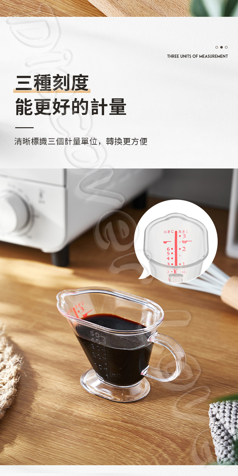 刻度單位:ml(毫升)/tsp(茶匙)/tbsp(湯匙)
